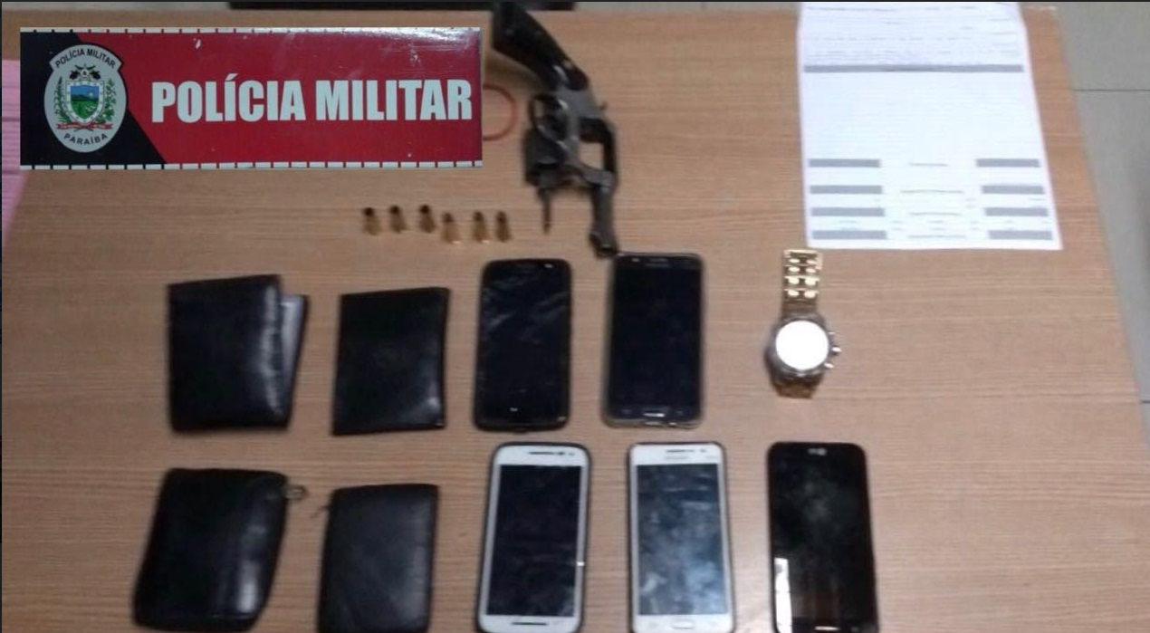 Após intensa perseguição, a Polícia Militar prendeu, em flagrante, um homem suspeito de realizar assaltos, e apreendeu a arma de fogo utilizada para intimidar as vítimas, no bairro Costa e Silva, em João Pessoa. A prisão aconteceu na noite dessa quarta-feira (20), resultando na recuperação de cinco celulares roubados, carteiras, documentos pessoais, e relógio das vítimas.