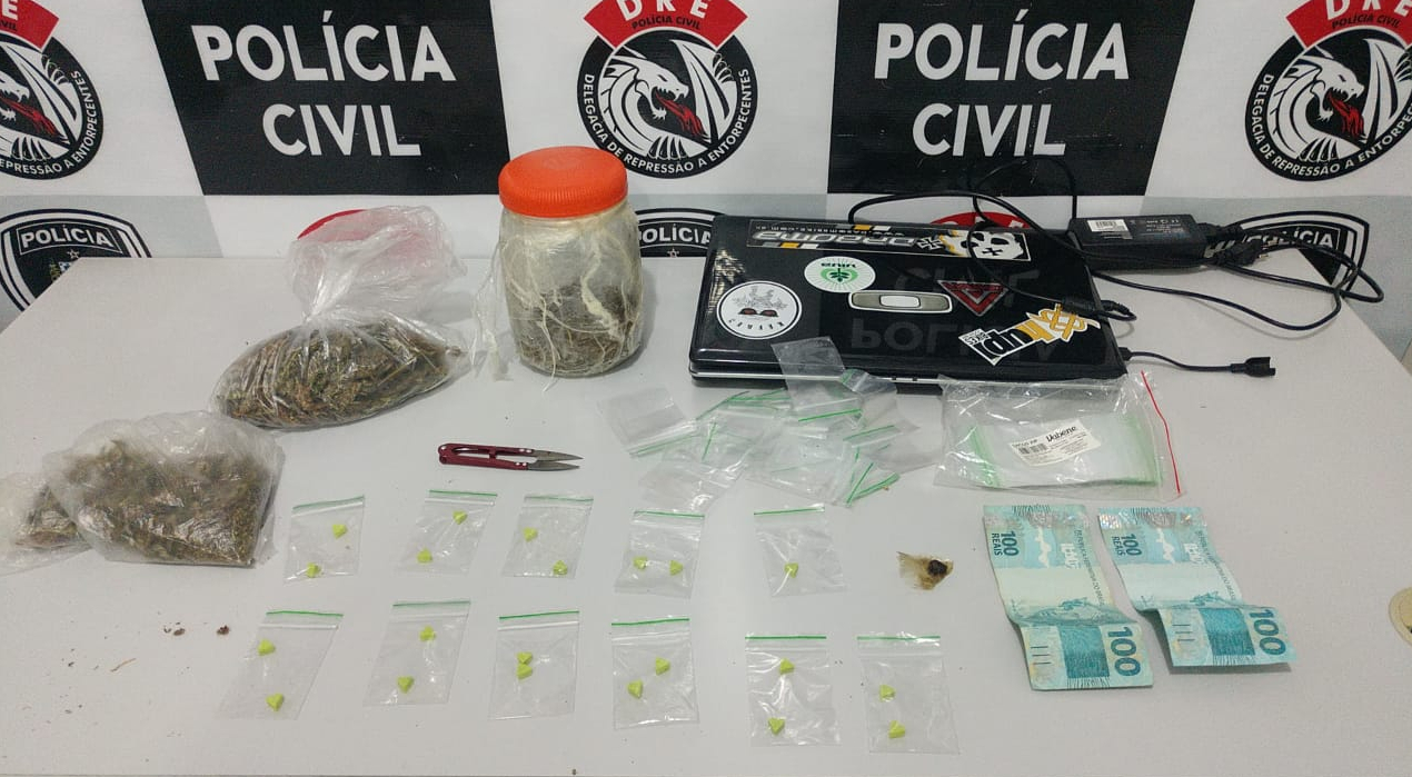 Após obter indícios da participação dele nos crimes, a polícia obteve da Justiça autorização para realizar buscas na residência do suspeito, onde foram encontradas as substâncias entorpecentes.