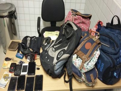 A Força Regional da Polícia Militar prendeu sete pessoas suspeitas de praticar um arrastão, na noite dessa quinta-feira (18), ao ônibus que faz a linha 109 (Rua do Rio), quando o coletivo passava pelo bairro de Jaguaribe, na Capital. Com os suspeitos foram recuperados celulares, bolsas femininas e objetos pessoais das vítimas. A PM apreendeu com o grupo uma faca e uma chave de fenda, materiais que foram utilizados para ameaçar as vítimas.