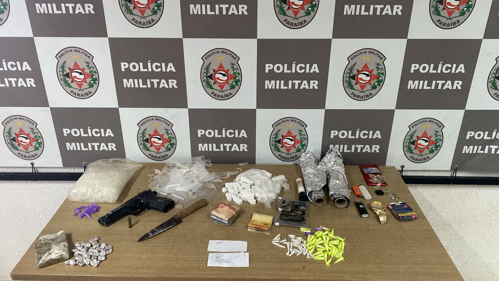 A Polícia Militar prendeu, na tarde desta terça-feira (18), dois suspeitos de tráfico e apreendeu mais de 100 porções de drogas, no bairro de Mangabeira, em João Pessoa. A ação resultou ainda na apreensão de simulacro de arma de fogo, munição e diversos materiais usados pelo tráfico.