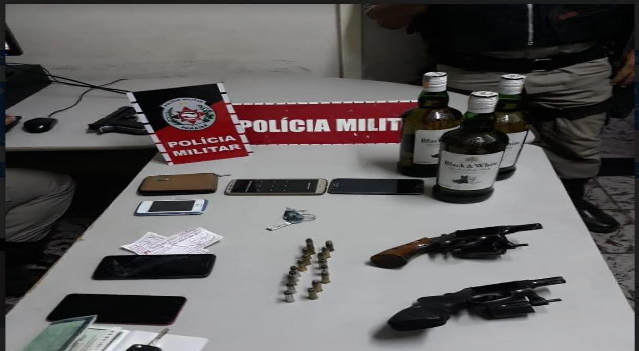 Em Pilar-PB, policiais do 8º Batalhão de Polícia Militar foram informados que na zona rural da cidade, em um estabelecimento comercial, homens supostamente armados estariam fazendo uso de bebida alcoólica. Os policiais foram ao local informado e se depararam com os quatro suspeitos deixando o local em um veículo. Na abordagem aos suspeitos, foi encontrado no interior do veículo dois revólveres calibres 38, com 18 munições intactas, três garrafas de uísques e seis aparelhos celulares.