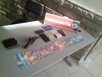 Após localizar o veículo, os policiais iniciaram buscas nas imediações para prender os suspeitos. Depois de algumas diligências, os PMs encontram três homens escondidos em uma casa. Outros dois suspeitos conseguiram fugir em uma moto. Com os detidos, foi apreendido um revólver calibre 38 com seis munições do mesmo calibre, além de dinheiro.