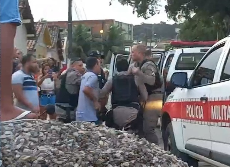 Após a batida, um policial tentou agredir um morador. Imagens feitas pelas pessoas da cidade que estava no local mostraram parte da confusão. Nos vídeos, é possível ver o momento em que um dos policiais tenta agredir um morador.