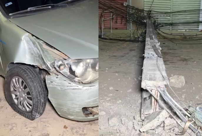Um acidente envolvendo um carro que atingiu um poste na madrugada deste domingo (21), em Cruz das Armas, na Zona Oste de João Pessoa. A estrutura não resistiu ao impacto e caiu sobre outro veículo, de uma funerária. A batida deixou vários moradores da região sem energia elétrica.