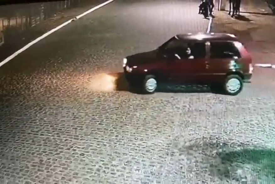 No vídeo, é possível ver que quem conduz o veículo, de cor vinho, é uma mulher. Conforme informações policiais, os bandidos reviraram a casa e fugiram levando uma quantia não especificada em dinheiro enquanto mantiveram o filho do prefeito refém, e amarrado.
