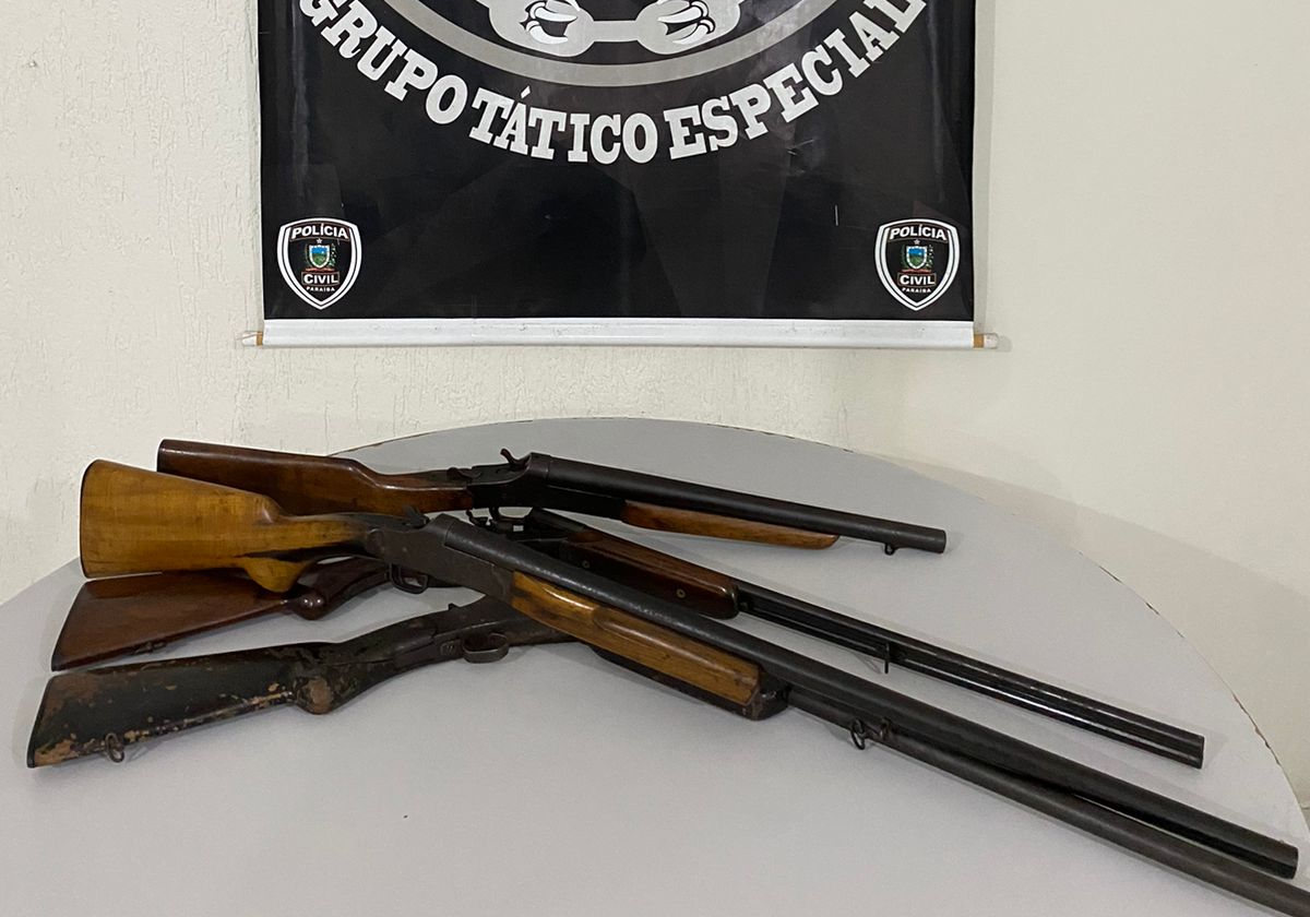 Após a expedição do mandado, os policiais se dirigiram à residência do preso e apreenderam duas espingardas calibre 12, uma espingarda calibre 36 e uma espingarda calibre 20, além de várias munições. Por se tratar de crime afiançável, o autuado pagou o valor da fiança e foi posto em liberdade, devendo responder pelo crime de posse de arma de fogo.