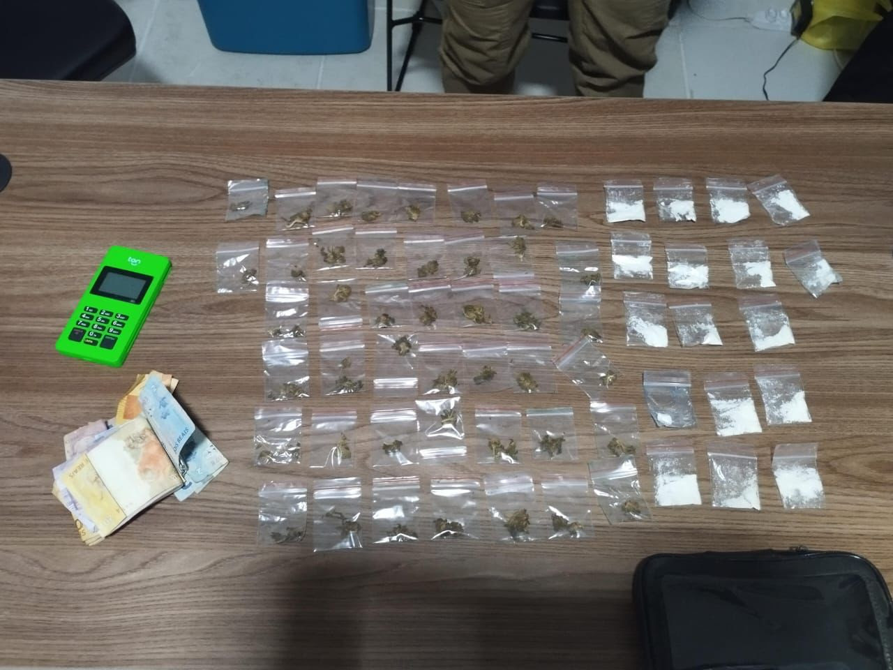 A Polícia Militar prendeu em flagrante, nesse domingo (4), um jovem de 19 anos suspeito de tráfico de cocaína e maconha, durante o desfile do bloco Virgens de Tambaú, em João Pessoa. A prisão foi registrada perto da área onde ficam os banheiros químicos. Com ele, foram apreendidas 65 porções de drogas, dinheiro em espécie e uma maquineta usada para receber outras formas de pagamento.