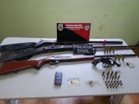 Uma operação conjunta entre as polícias Militar e Civil prendeu, na manhã desta sexta-feira (27), uma dupla suspeita de pelo menos cinco homicídios na praia de Jacumã, no Litoral Sul do Estado. Na ação, realizada para cumprir cinco mandados de prisão, busca e apreensão. Foram presos Lúcio de Souza Ribeiro, 72, que estava em uma casa, em Jacumã, onde foram encontradas quatro armas e munições (sendo três espingardas calibre 12 e um revólver calibre 38), e Lucas Cardoso Pessoa, 18, preso na praia de Coqueirinho. Ele teria participação direta nos crimes.