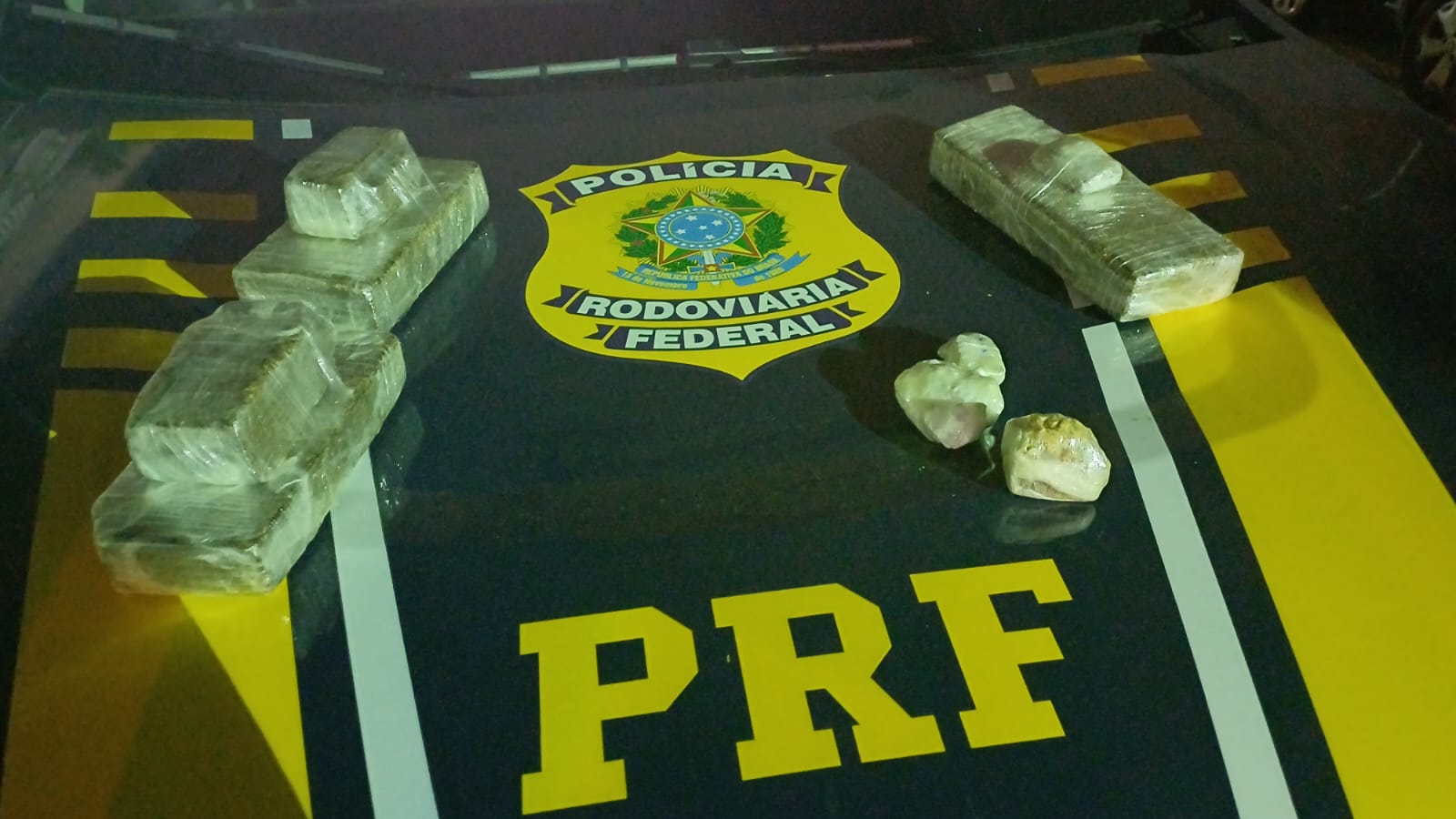 Durante a vistoria no automóvel, foi encontrado um saco preto contendo 52 gramas de crack, 78 gramas de cocaína e 3 quilos de maconha. Questionado pelos agentes, o suspeito alegou que os entorpecentes pertenciam a um parente e que ele apenas estaria transportando a carga.