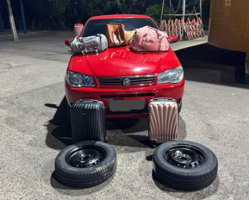 Ainda no sábado, em Caldas Brandão, a PRF interceptou um Fiat Palio utilizado por dois suspeitos de furtos na região. Dentro do veículo, foram encontrados diversos itens roubados, reconhecidos pelas vítimas. Os homens, de 23 e 29 anos, foram presos.