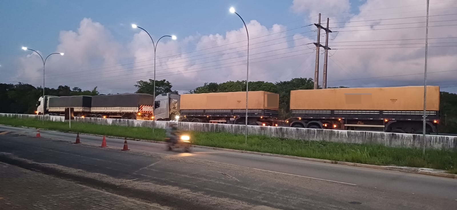 Agentes da PRF realizavam fiscalização na BR-101, km 31, próximo à Unidade Operacional da PRF no município, quando visualizaram e abordaram duas carretas a fim de averiguar regularidade do transporte da carga. Os veículos haviam saído de Unaí-MG com destino a Goianinha-RN. Durante os procedimentos, ficou evidenciado que um dos condutores não possuía Autorização Especial de Trânsito (AET) e o Disco Tacógrafo estava sem aferição.
