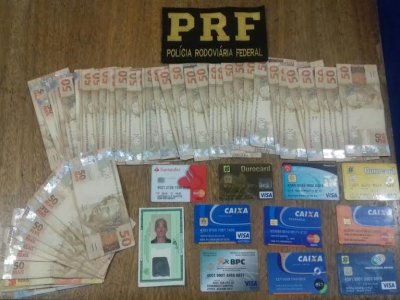 A Polícia Rodoviária Federal (PRF) prendeu na tarde dessa quinta-feira (23) um estelionatário de 57 anos; o suspeito já havia sido preso em Alagoas, Bahia e Ceará. Com o homem foram encontrados diversos cartões bancários e uma quantia de aproximadamente R$ 2.500,00 provenientes dos golpes por ele aplicados.