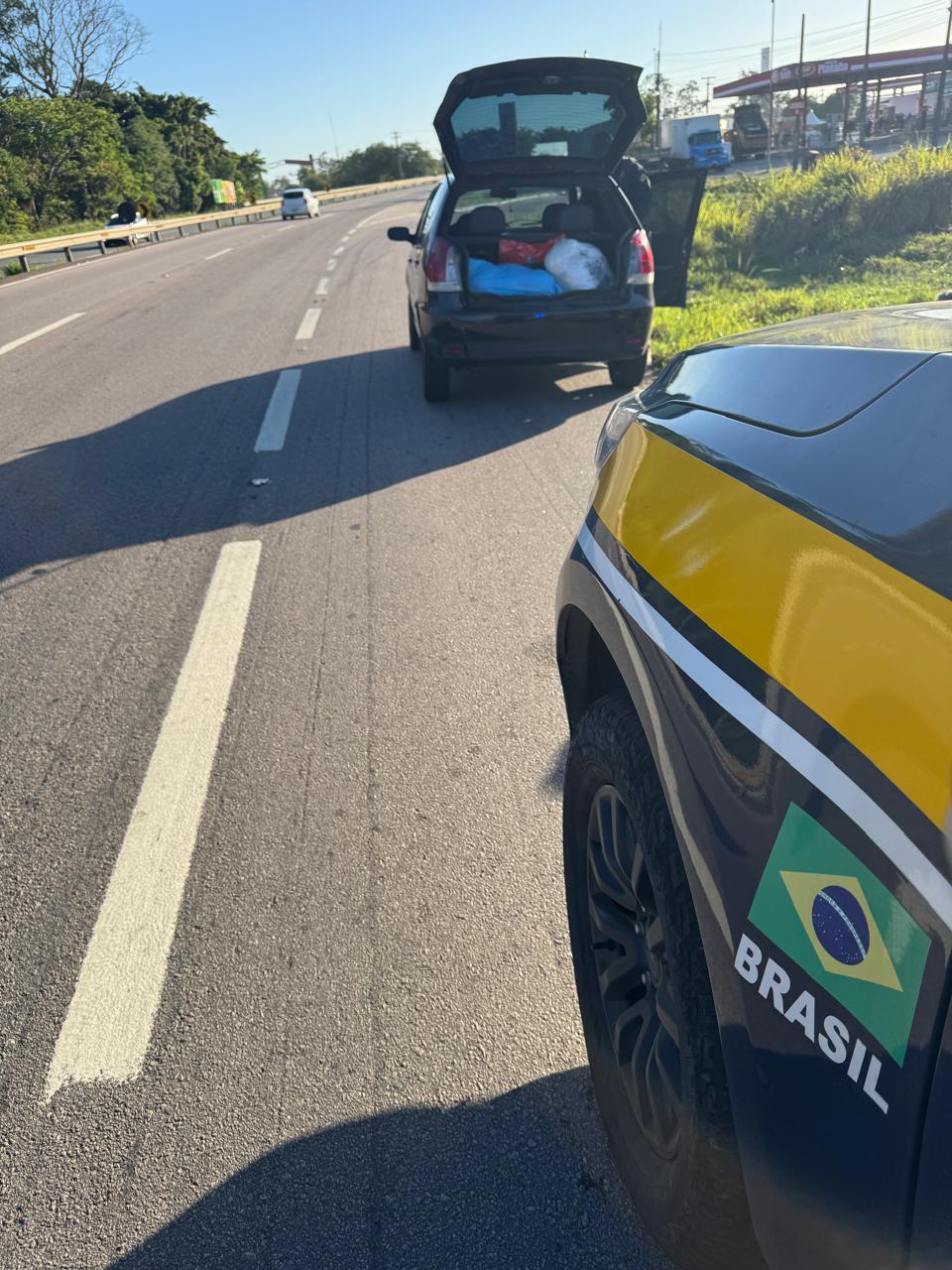 Durante a inspeção minuciosa no porta-malas do veículo, os policiais localizaram diversos sacos contendo a substância entorpecente. Questionados, os ocupantes não deram detalhes sobre a origem ou o destino final da carga.