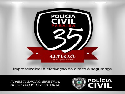 Começam nesta sexta-feira (19) as atividades alusivas aos 35 anos da Polícia Civil da Paraíba, comemorados no dia 21 de agosto. A programação acontece em João Pessoa, na sede da Academia de Polícia Civil (Acadepol), situada às margens da PB-008, em Jacarapé, e em Campina Grande, com cursos para os policiais civis, além de homenagens e inaugurações. No dia 19 de agosto, também são celebrados três anos da nova sede da Acadepol.