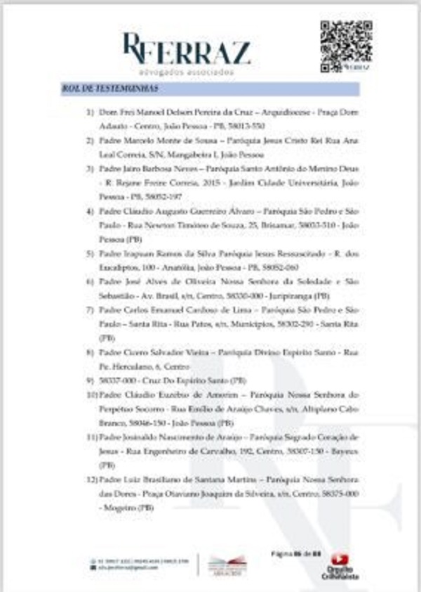Em um documento detalhado, o religioso não só refuta as alegações como também arrola um impressionante rol de 36 testemunhas, que inclui figuras de proeminência no cenário estadual, autoridades eclesiásticas de alto calibre, além de personalidades políticas.