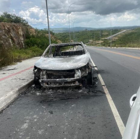 Motoristas estão expressando preocupação com a presença de um carro incendiado e abandonado no meio da pista do Arco Metropolitano, sentido Lagoa Seca. A Polícia acredita que o veículo esteja relacionado à tentativa de assalto ao carro-forte ocorrida na terça-feira (25).