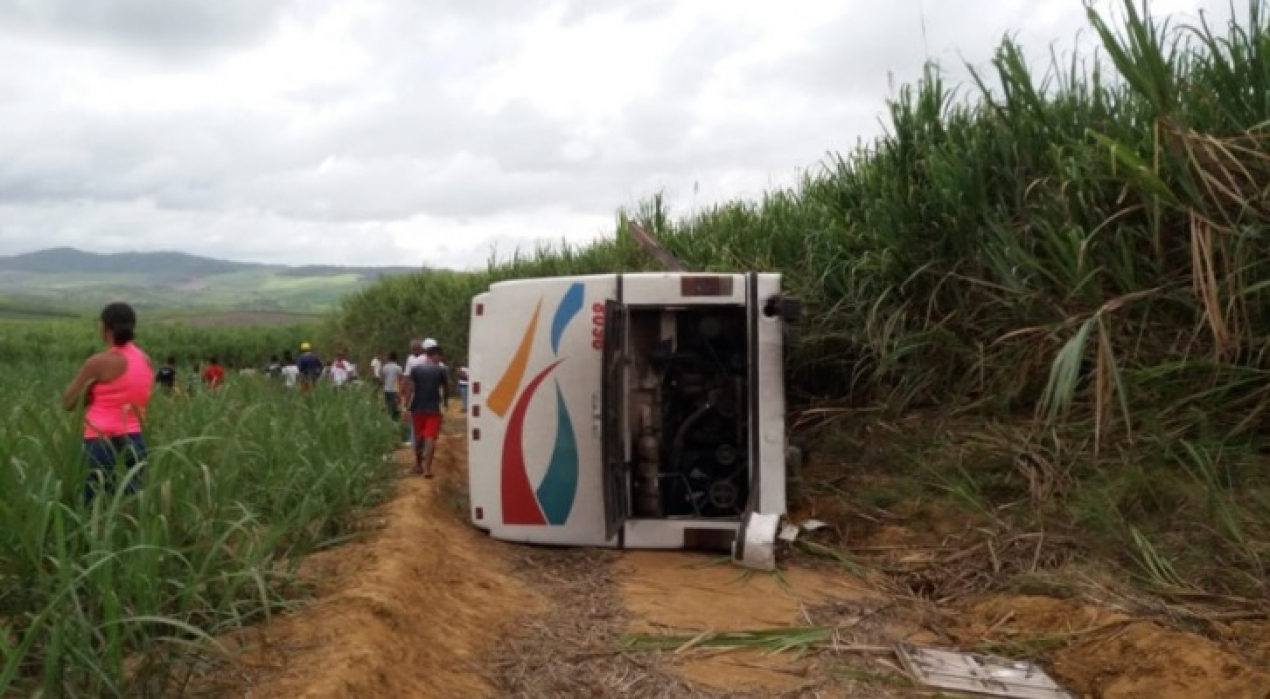 Segundo informações da Polícia Militar, o ônibus que seguia de Juazeiro (CE) com destino à Maceió (AL) perdeu o controle, saiu da pista e capotou em uma área de canavial.