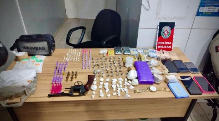 Policiais do 3º Esquadrão do Regimento de Operações Táticas com Apoio de Motocicletas (ROTAM) desarticularam um grupo suspeito de tráfico de drogas no bairro Vila Nova, em Marizópolis, no sertão da Paraíba. Na segunda-feira (24), quatro acusados foram presos em flagrante com um revólver, munições, mais de 200 porções de drogas, balanças de precisão e embalagens para armazenamento de entorpecentes.