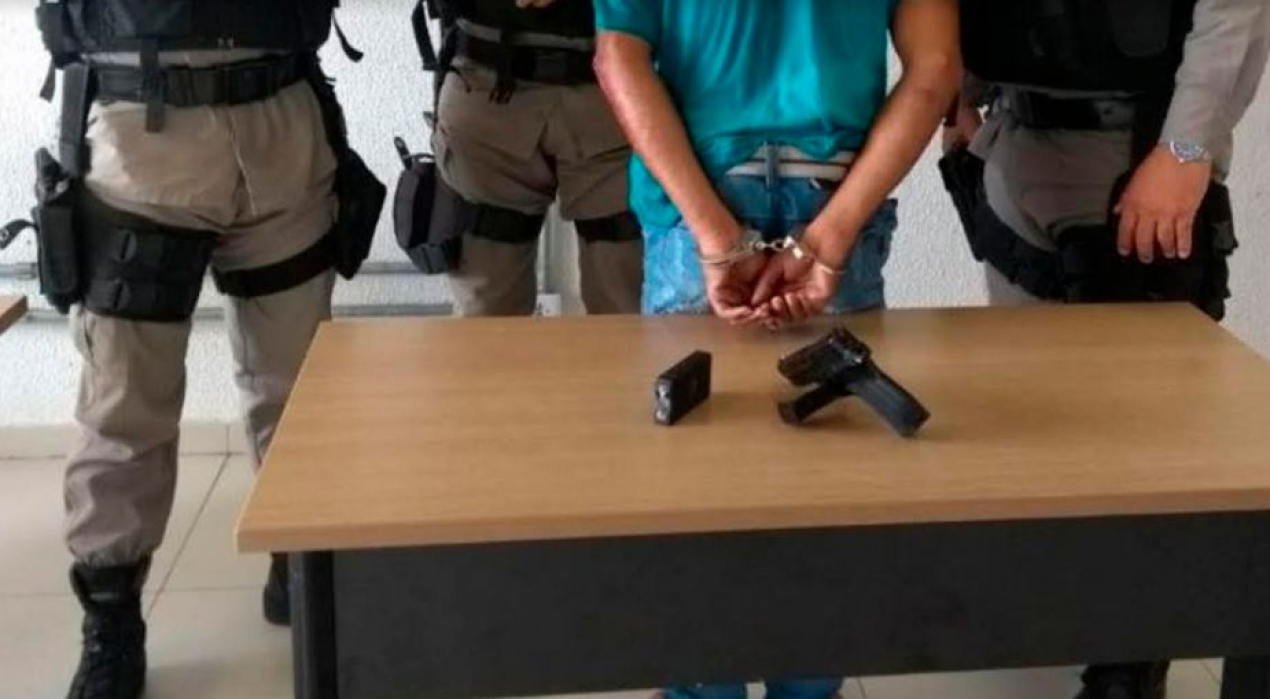 Em novembro de 2016, o suspeito detido nesta terça-feira e um comparsa foram presos no momento em que se preparavam para levar mais de R$ 100 mil em aparelhos celulares, R$ 6 mil do caixa e a arma do vigilante de uma loja de celulares. Após perceberem que a PM tinha cercado todo o quarteirão, eles fizeram reféns funcionários e clientes. Na época, ele revelou aos policiais que já havia sido preso com arma de fogo mas que havia sido liberado. Na ocorrência, a PM prendeu a dupla e mais um comparsa, acusado de ser o mentor do crime.