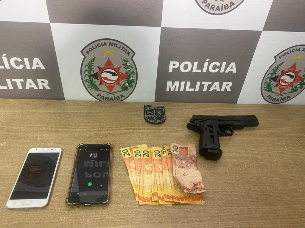 A Polícia Militar prendeu um suspeito de 28 anos que estava praticando assaltos, na noite dessa quinta-feira (5), no bairro do Aeroclube, em João Pessoa. Com o homem, foram recuperados dois celulares, dinheiro e apreendido um simulacro de pistola que era usado para ameaçar as vítimas. O alvo do criminoso, que praticava os roubos em uma bicicleta, eram aparelhos celulares.
