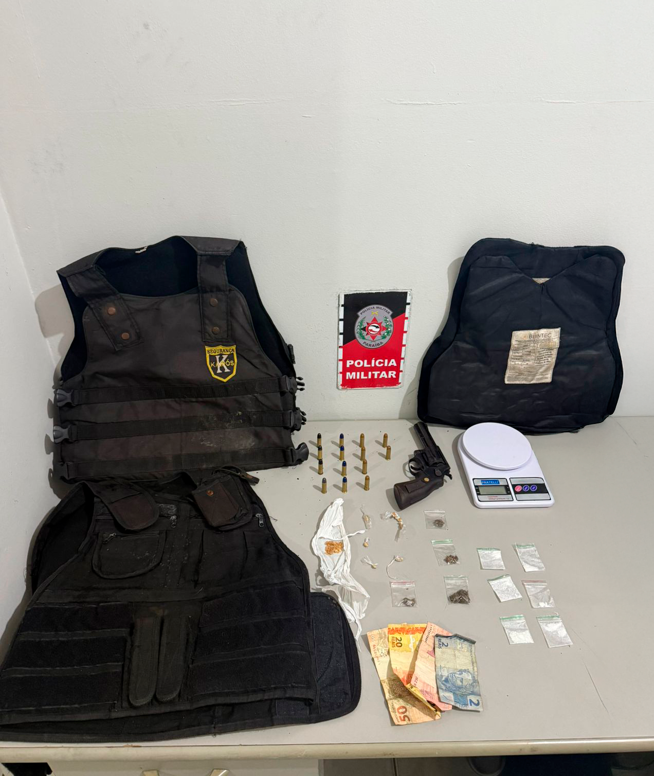 Na madrugada deste sábado (25), policiais da Força Tática do 7º BPM prenderam um suspeito, de 22 anos, por tráfico de drogas na cidade de Santa Rita-PB. Com o suspeito, que é reincidente, foram apreendidos coletes balísticos, arma de fogo e drogas.