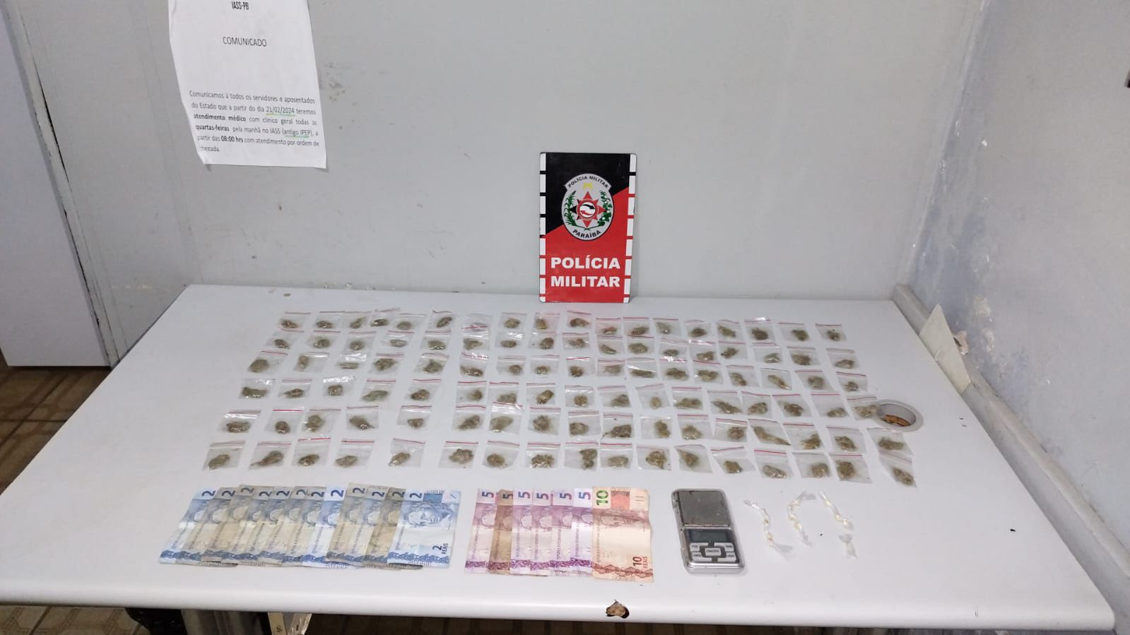 A equipe da Força Tática realizava rondas quando recebeu denúncias de que na localidade conhecida por ‘Favelinha’ havia um ponto de tráfico de drogas. Rapidamente, a equipe policial foi ao local e, ao se aproximar, o suspeito tentou fugir, mas foi alcançado. Durante a abordagem, foram encontrados 103 trouxas de maconha; 15 pedras de crack; dinheiro em espécie; além de uma balança de precisão.