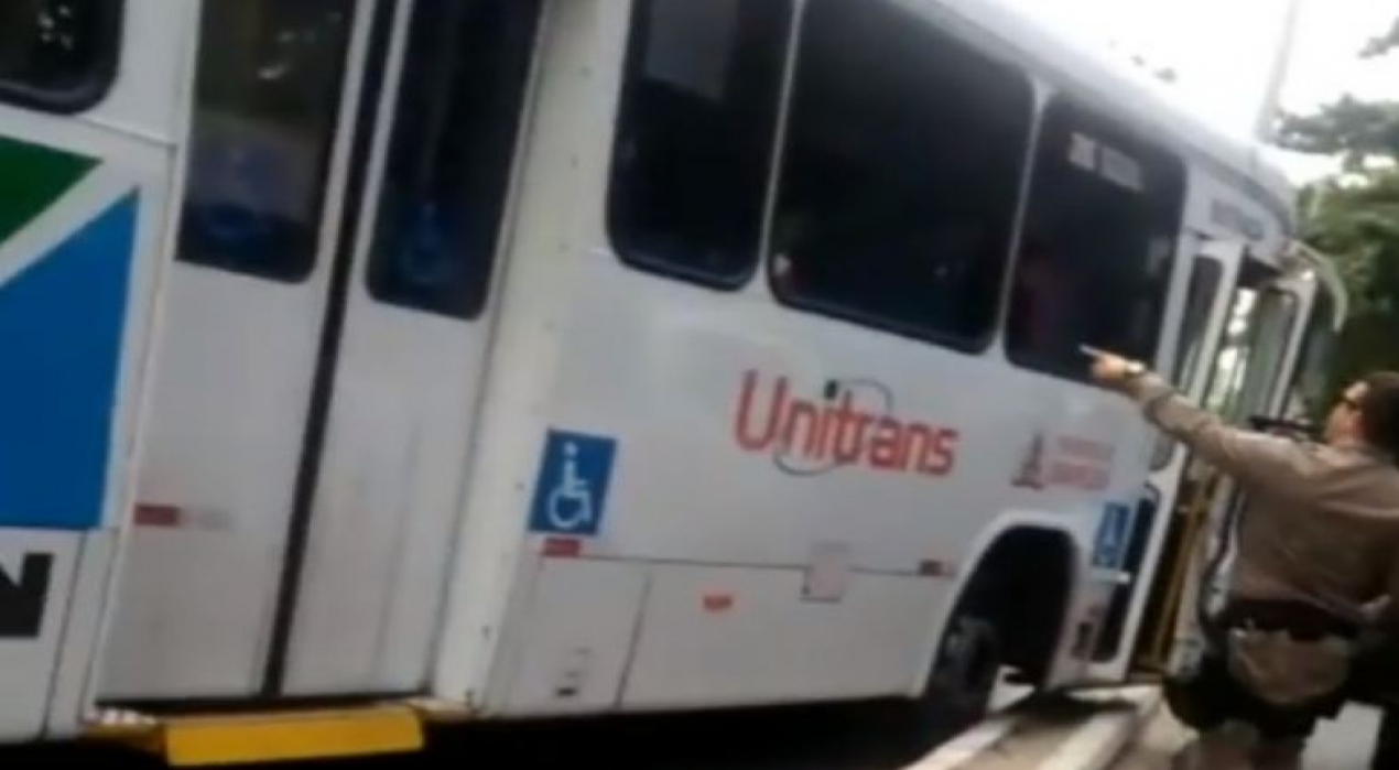 O que o acusado não sabia era que o ônibus estava sendo seguido de perto por uma viatura da Polícia Militar. Assim que os policiais notaram a estranha movimentação dentro do veículo ordenaram que o motorista parasse o coletivo e realizaram a aboradagem.