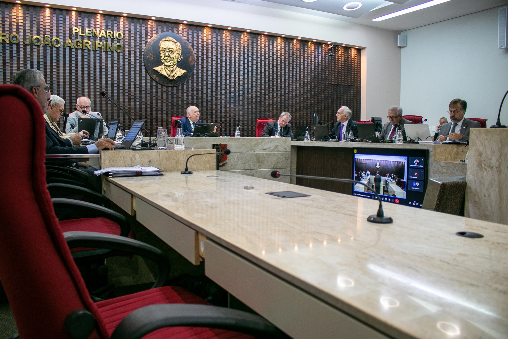 Composição – O TCE realizou sua 2427ª sessão ordinária remota e presencial, sob a presidência do conselheiro Nominando Diniz Filho. Compuseram o quórum os conselheiros Arnóbio Alves Viana, Fernando Rodrigues Catão, Fábio Túlio Nogueira e Antônio Gomes Vieira Filho. Também os substitutos Oscar Mamede Santiago e Renato Sérgio Santiago Melo (online). O Ministério Público de Contas esteve representado pelo procurador geral Marcílio Toscano da Franca.