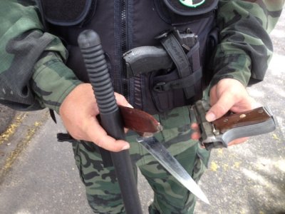 Um pistola 380 e uma faca peixeira foram encontradas no interior do Centro Administrativo Estadual, no final da manhã desta segunda-feira (21), após uma varredura da polícia militar, que está revistando todos que entram e que saem da dependência do órgão.