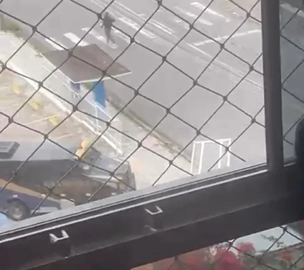 Imagens mostram a ação dos assaltantes e o barulho de muito tiro. Para facilitar a saída, o carro-forte derrubou o portão da agência, permitindo que os vigilantes escapassem rapidamente. Durante a fuga, o grupo roubou um veículo na rua para tentar escapar.