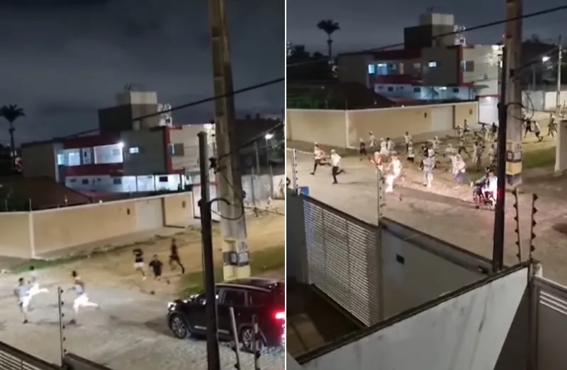 Moradores da região registraram o momento da confusão, que envolveu pancadarias, correrias e tiros.