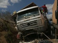 Segundo informações, o caminhão descia a ladeira sem freio e acabou batendo no veículo que seguia no sentido contrário.