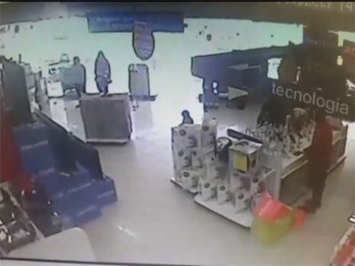 Um dos homens estava armado e rendeu uma funcionária na porta da loja, os outros entraram no local portando alicates para conseguir retirar os produtos da vitrine.
