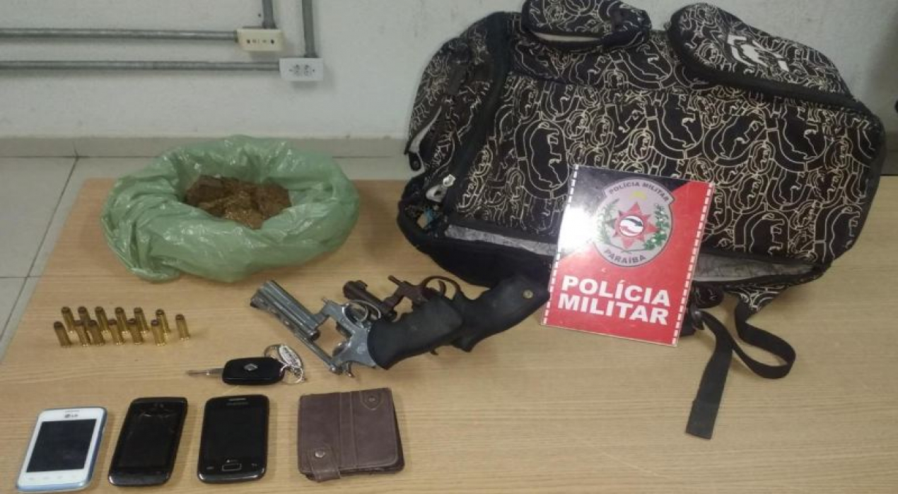 Após intensa perseguição, a Polícia Militar prendeu um trio suspeito de cometer assalto, apreendeu duas armas de fogo e drogas, e recuperou um carro roubado, na noite dessa quinta-feira (25) em João Pessoa. Dos três suspeitos presos, dois já respondiam por roubo e tráfico de drogas.