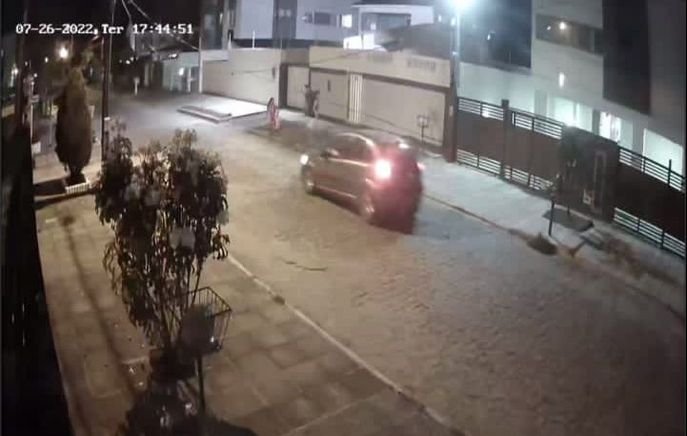 Câmeras do circuito de segurança de um imóvel registraram a ação. As imagens foram disponibilizadas à PM.