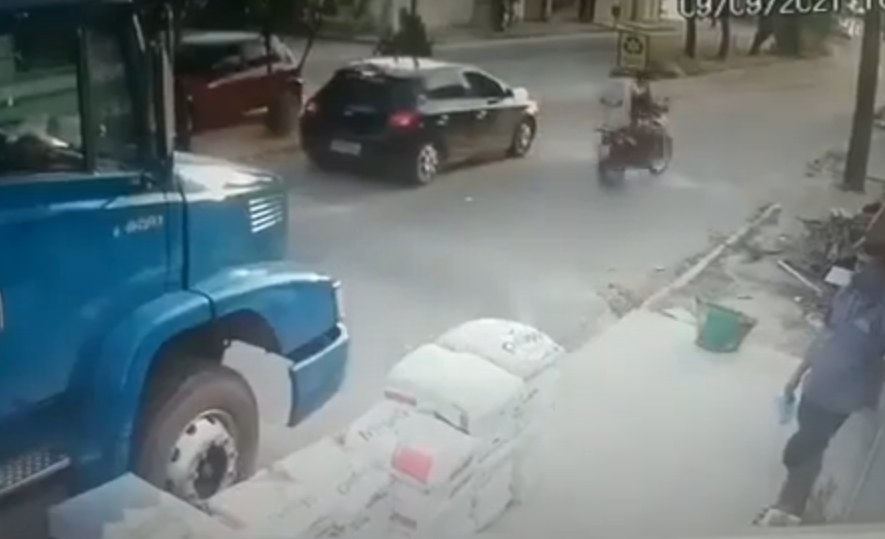 O vídeo flagra quando a dupla em moto passa por um carro e os ocupantes do veículo atiram contra a dupla, que cai.