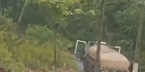 O vídeo do acidente foi gravado por um internauta e mostra o momento em que o caminhão sai da pista e começa a capotar. Os dois ajudantes, que estavam na carroceria, pulam primeiro. Em seguida, o motorista tenta controlar o veículo, mas também é obrigado a pular.