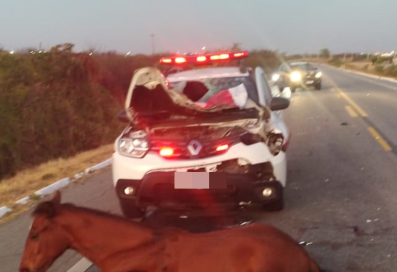 Com o impacto, a frente da viatura ficou parcialmente destruída. Apesar do susto, nenhum dos ocupantes ficou ferido. O cavalo sobreviveu, mas teve as patas quebradas com o impacto da batida e foi socorrido pela equipe da Prefeitura de São Mamede para um local adequado de atendimento.