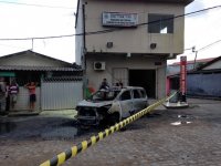 Uma viatura da Polícia Militar pegou fogo na frente da Unidade de Polícia Solidária (UPS) da comunidade Bola na Rede, no bairro do Oitizeiro, em João Pessoa, na madrugada deste domingo (09).