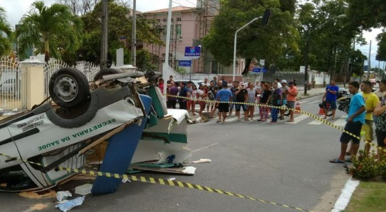Uma ambulância com cinco ocupantes capotou na Avenida João Machado em João Pessoa no final da manhã deste domingo (25). O acidente aconteceu no bairro de Jaguaribe logo após o veículo colidir contra uma caminhonete. Uma adolescente grávida que vinha na ambulância não resistiu aos ferimentos e morreu.