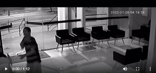 O circuito de câmera de segurança registrou o arrombamento de uma clínica odontológica na Avenida Epitácio Pessoa, em João Pessoa. Na noite de ontem (26), uma dupla arromba a porta de vidro para ter acesso a parte interna da clínica.