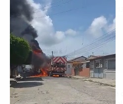 Um pedestre flagrou um caminhão da prefeitura pegando fogo, no meio da rua, na cidade de Bayeux, na tarde desta sexta-feira (03). Ainda não se sabe se o fogo foi provocado por uma falha mecânica ou aconteceu de forma proposital, tendo em vista que na cidade vários servidores deflagraram greve e estão insatisfeitos com a forma de administrar da prefeita Luciene.