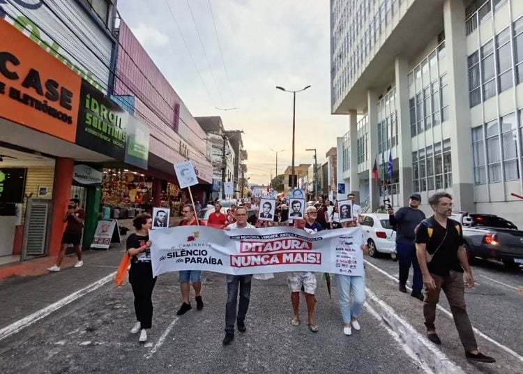Com o objetivo de ocupar as ruas, homenagear e reivindicar justiça pelas vítimas da ditadura militar (1964-1985), a 2ª Caminhada do Silêncio ocorre, em João Pessoa, nesta terça-feira (1º), data que marca os 61 anos do golpe de 1964. A concentração será em frente ao prédio da Ordem dos Advogados da Paraíba (OAB-PB), às 15h. O evento é uma realização do Memorial da Democracia da Paraíba e do Comitê Paraibano Memória, Verdade e Justiça (CPMVJ).