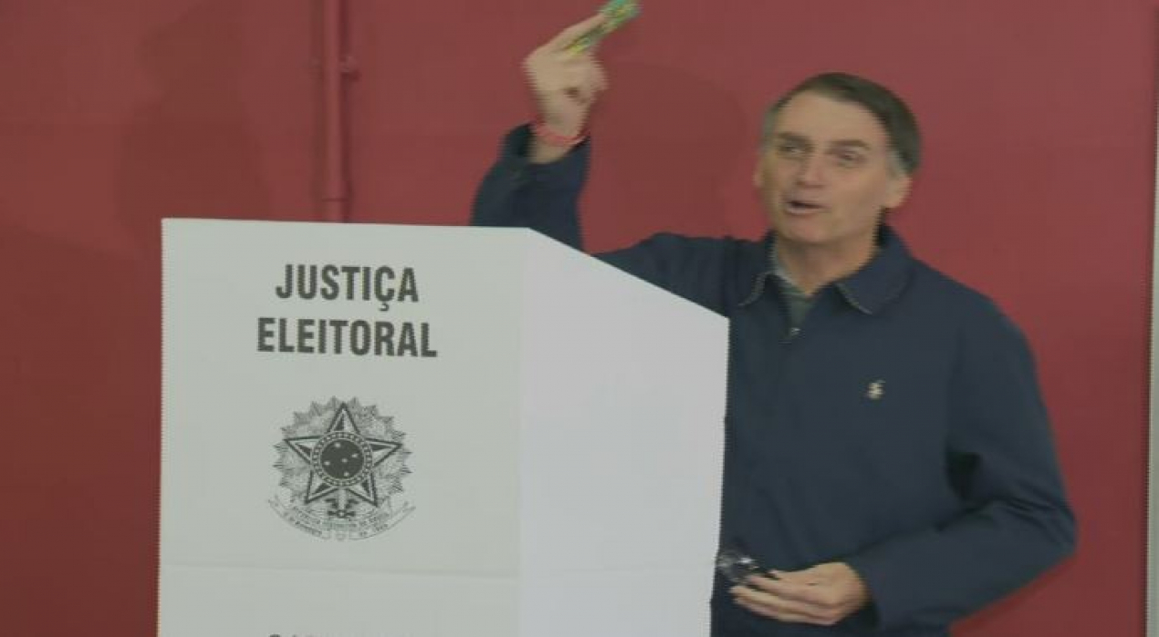 Bolsonaro estava acompanhado do filho e candidato ao Senado pelo Rio de Janeiro, Flávio Bolsonaro. Ao sair da seção eleitoral, Bolsonaro foi questionado por jornalistas se vê chance de vencer no primeiro turno. O candidato respondeu: "Acaba hoje".