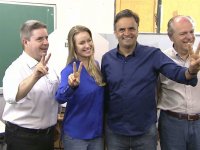 Aécio levou cerca de um minuto para votar. Depois posou para fotos, ao lado da esposa, e fez o tradicional gesto de "v" de vitória. Ele já havia acompanhado Anastasia e o candidato do PSDB ao governo de Minas, Pimenta da Veiga, em suas seções de votação.