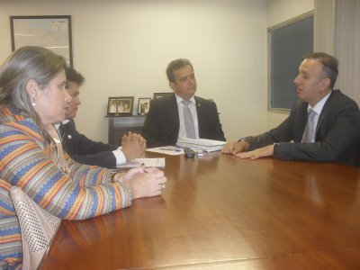 O deputado federal e ex-ministro das Cidades, Aguinaldo Ribeiro (PP), participou nesta terça-feira (08), de uma audiência com o presidente da Funasa – Fundação Nacional de Saúde -, Henrique Pires (PMDB), para tratar de assunto referente ao município de Mãe D’Água, localizado no Sertão paraibano. O parlamentar estava em companhia do suplente de deputado estadual Monaci Marques Dantas (PPS) e de sua esposa, Hertha Fragoso Soares Marques.
