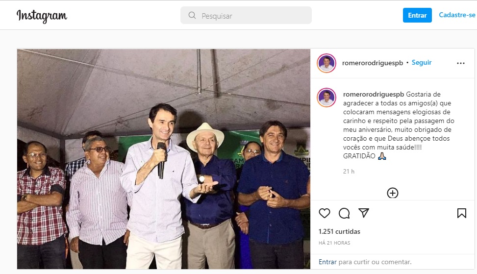 Desta vez, o aniversário de Romero passou quase despercebido pela classe política paraibana, vimos somente a menção do atual prefeito de Campina Bruno Cunha Lima que integra o parido de Romero e do deputado estadual Manoel Ludgário..