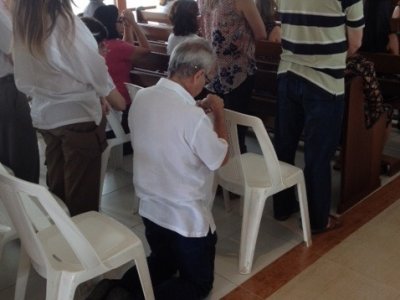 Assim como informou previamente através de sua assessoria, o candidato Cícero Lucena participou de evento religioso no início da manhã deste domingo. Durante a celebração, Cícero ajoelhou-se e meditou enquanto os demais fiéis permaneciam de pé. Após a missa, Cícero irá votar no Colégio Meta, no bairro Bessa.