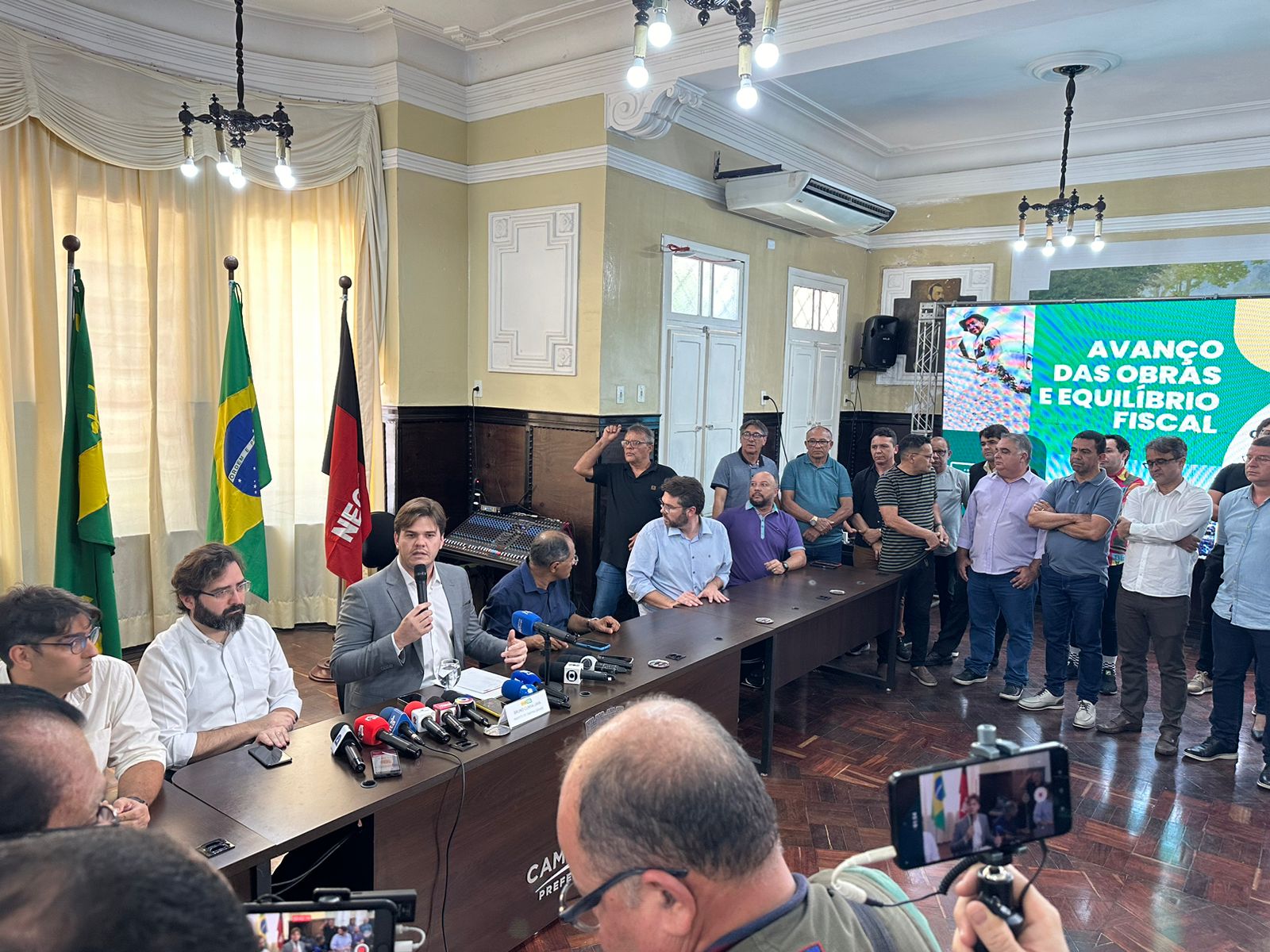 Durante a coletiva, o prefeito Bruno Cunha Lima reiterou a importância de uma gestão responsável e transparente diante do cenário econômico atual.