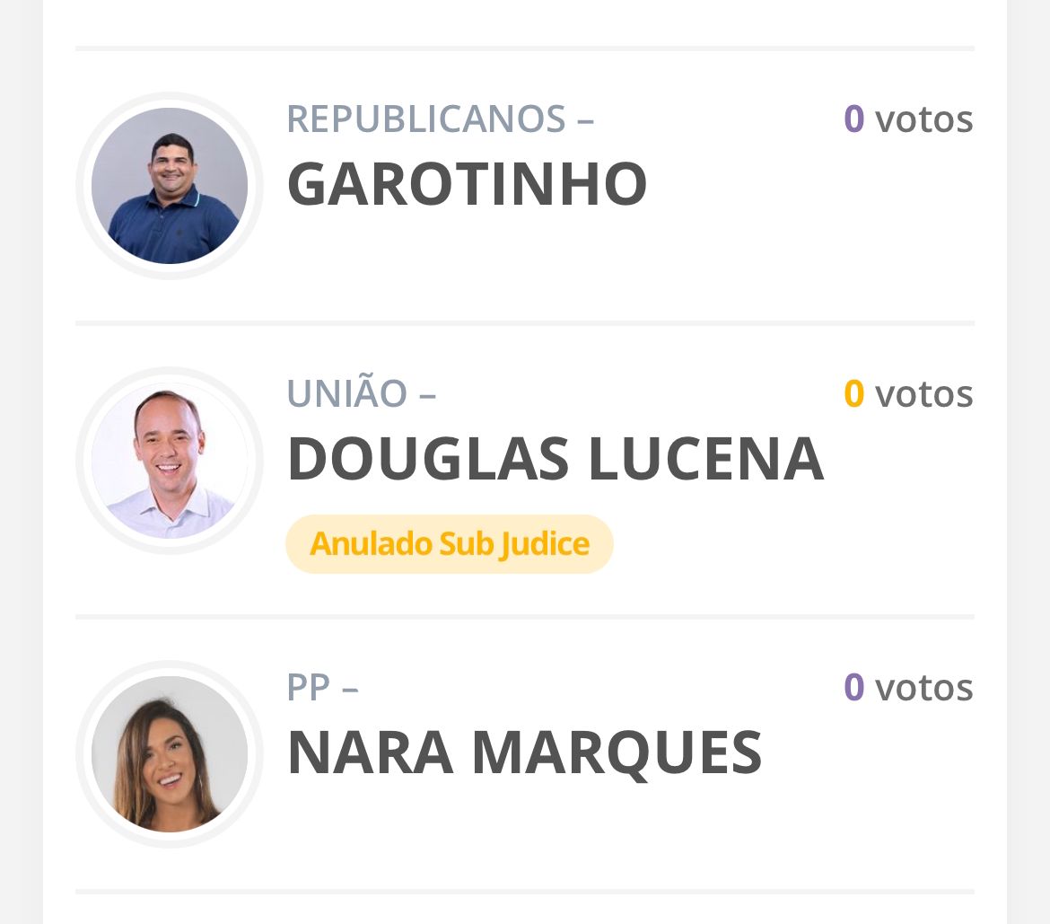 O Tribunal Superior Eleitoral (TSE) lançou aplicativo “Resultados” para que população acompanhe a apuração. Nele, o candidato Douglas Lucena já consta diferente da grande maioria, pois sua votação já consta como sendo “anulada sub judice”.
